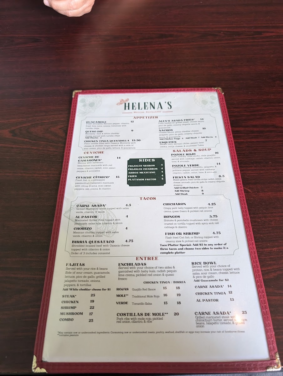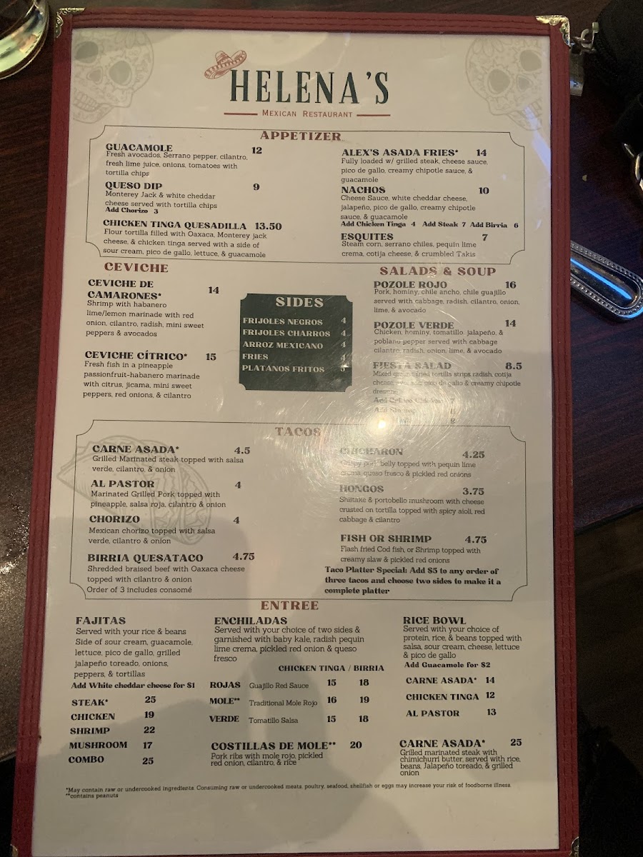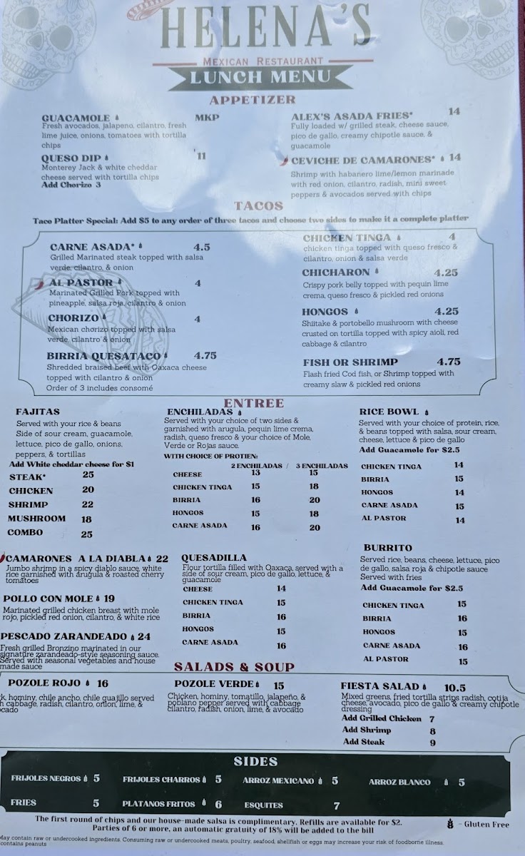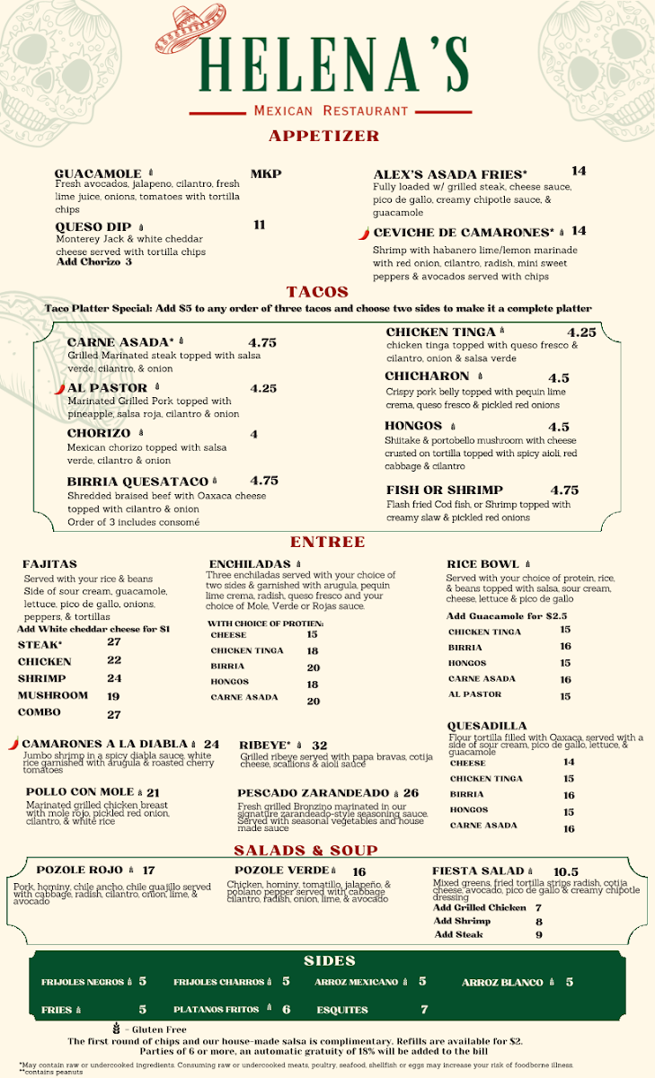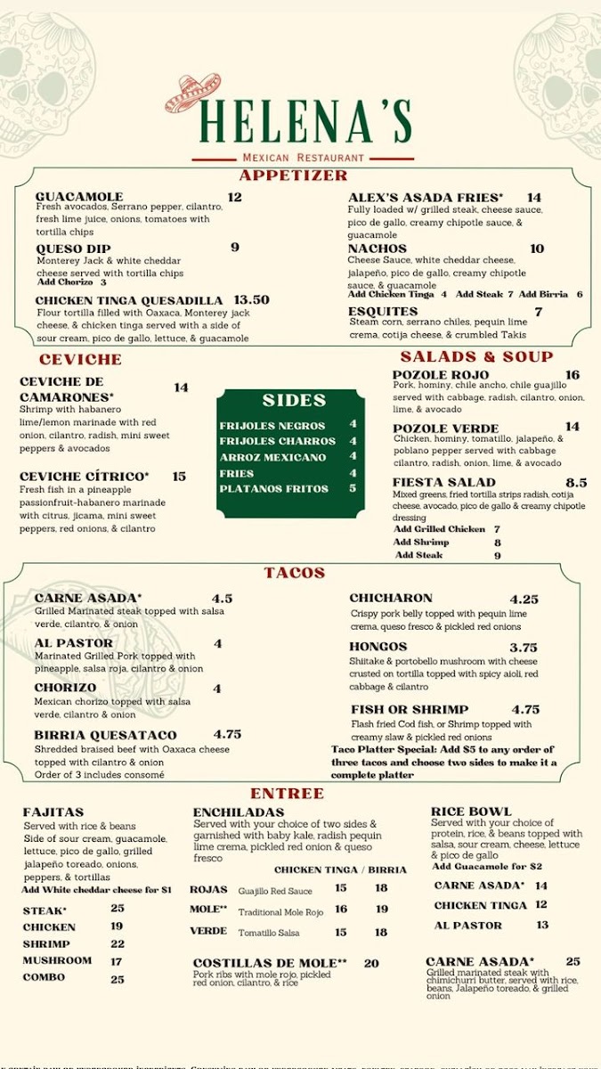 When you visit Helena's Mexican Restaurant Menu, you're in for a treat. Located on Telegraph Road in Alexandria, VA, this spot offers a flavorful journey through authentic Mexican cuisine. From sizzling fajitas to perfectly seasoned tacos, each dish brings something exciting to the table. The menu is thoughtfully crafted to offer both classic favorites and unique creations that reflect the rich flavors of Mexican cooking.